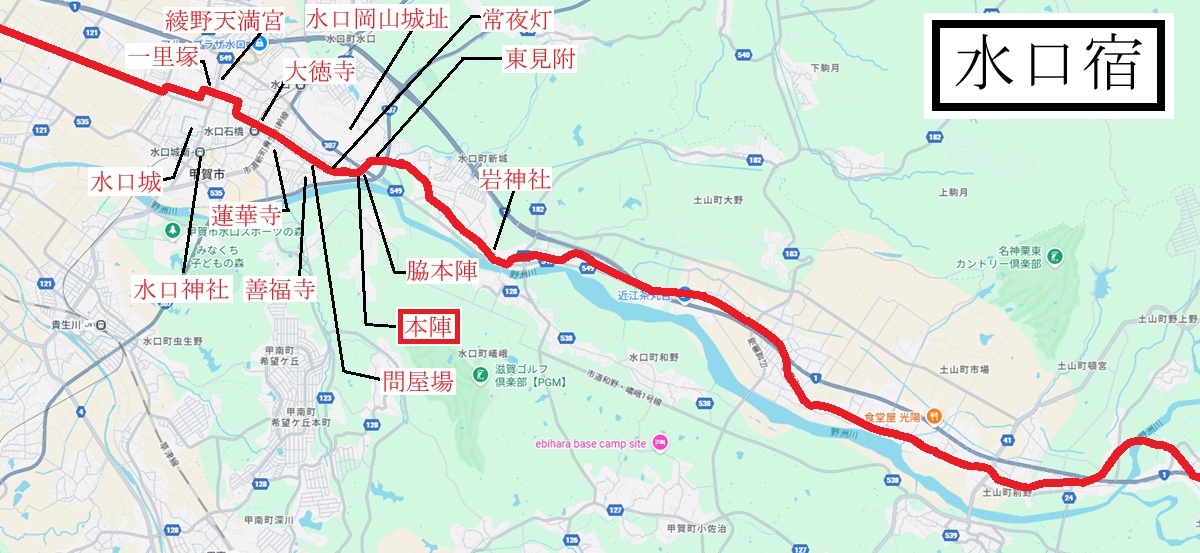 50. 水口宿(近江国甲賀郡・現在の滋賀県甲賀市)2里25丁=約10.5km・41宿