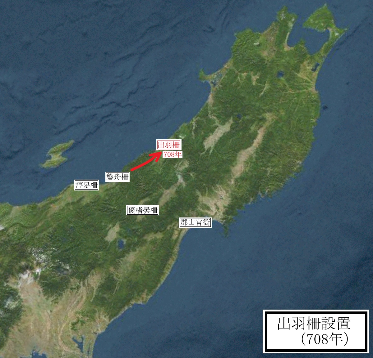 その後、和銅元年(708年)9月28日、越後国庄内地方に出羽郡が新設され、また出羽柵が建築されました。
