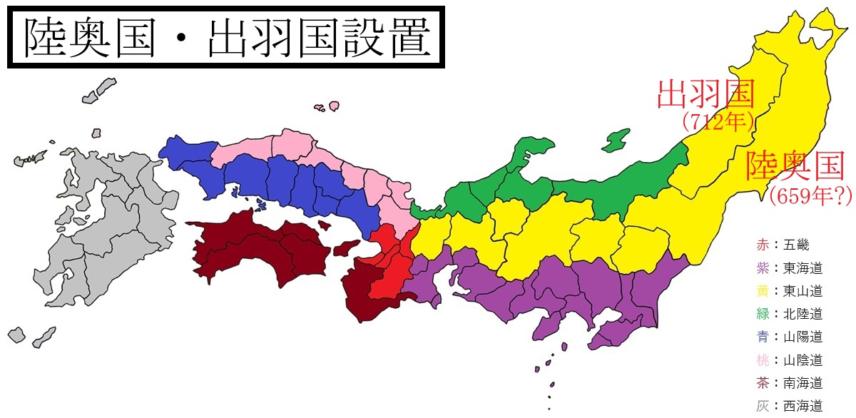 そして、正確な時期は不明ですが、遅くとも斉明天皇5年(659年)3月までに陸奥国が設置されます。